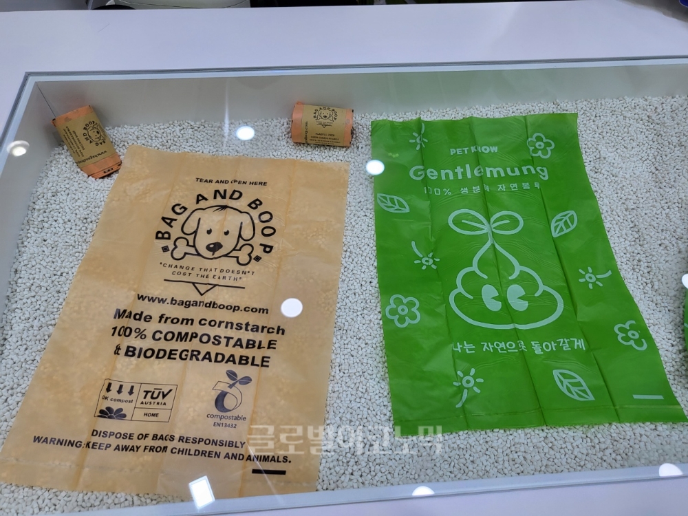 이미지 확대보기최근 이슈인 ‘친환경’을 제품에 녹인 생분해성 봉투, 그린빨대, 앞치마 등을 선보이는 부스들도 전시회에서 많은 영역을 차지했다. 그 중 한 곳인 ‘Tom`s 디자인 컴퍼니’는 “자연분해 음식물쓰레기 봉지입니다”라는 문구가 적힌 비닐봉투를 내밀면서 개인 카페 창업자나 ‘카카오’ 등 대형 기업과 교류를 맺고 브랜드 이름을 알리려는 노력을 하고 있다고 말했다.