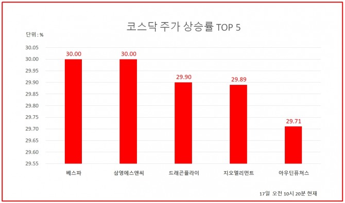 코스닥 상승률 상위 종목은?...베스파·드래곤플라이 게임주 상한가