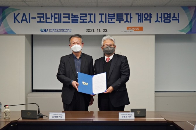 이미지 확대보기KAI는 23일 AI(인공지능)·빅데이터 전문업체 코난테크놀로지 지분 10%를 인수하는 계약을 체결했다고 24일 밝혔다.
