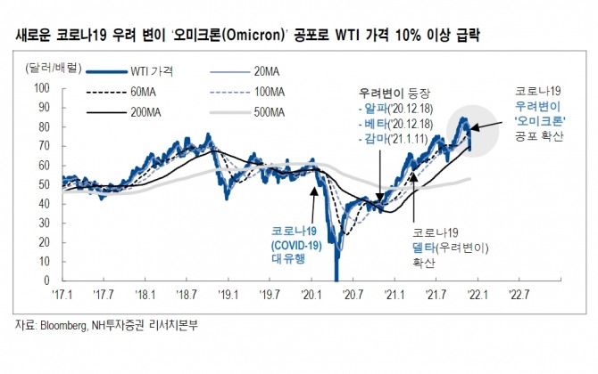 NH투자증권은 오미크론을 필두로 한 추가적인 악재가 불거지지만 않는다면 금주 중으로 반등 시도 가능성도 조심스럽게 전망하고 있다.