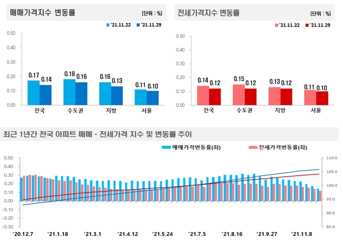 11월 다섯째주 주간아파트가격 동향. 자료=한국부동산원