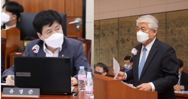 이상헌 더불어민주당 의원(오른쪽)과 유경준 국민의 힘 의원. 사진=뉴시스