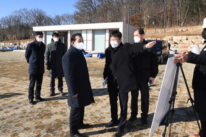 유천호 군수는 지난 13일 관련 국·과장과 함께 ‘관청근린공원 조성사업’ 현장을 찾아 구석구석을 살펴보며 공원 내 시설물, 수목식재 등 시공 상태를 확인했다. 군민들과 어린이들이 공원을 이용하는데 불편하지 않도록 편의시설을 임시개장 전에 보강할 것을 당부했다.