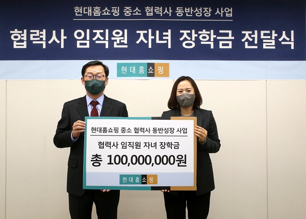현대홈쇼핑이 중소기업 협력사 임직원 자녀 100명에게 장학금 1억원을 전달한다.