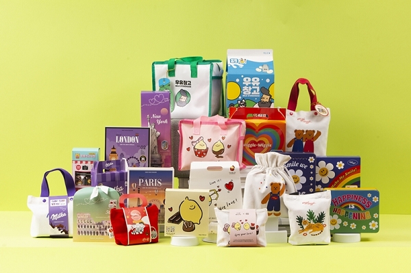 해당 상품은 총 11종으로(7100원~2만900원) 초콜릿과 과자 등이 담겼으며 에코백, 파우치 등 재활용이 가능한 패키지를 사용했다. 또 브랜드의 스티커, 컵받침 등의 굿즈도 동봉해 실용성을 높였다. 유기농 우유 브랜드 ‘보령 우유창고’와 말랑카우 제리를 담은 컬래버 상품 2종도 만나볼 수 있다.