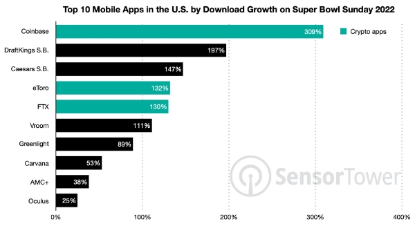 미국 매체 스포팅 뉴스에 따르면 올해 슈퍼볼 30초 영상 광고비는 650만달러(약 78억원)으로 전년 대비 16% 상승했다. 코인베이스, FTX 등 업체들이 광고를 냈으며, 바이낸스는 슈퍼볼 광고를 내는 대신 '암호화폐의 위험성을 일반인들에게 알려야한다'는 이유로 경쟁사들을 비판하는 내용의 광고를 선보인 것으로 알려졌다.