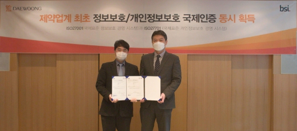 ISO27001의 확장판인 ISO27701은 개인정보보호 경영관리시스템 글로벌 표준으로 회사가 개인정보 보호를 위한 요구사항을 준수하고 있는지를 검증한다. 대웅제약이 획득한 ISO27701 인증 범위는 제조·생산·연구분야 개인정보에 해당되는 임상실험 관련 개인정보다.