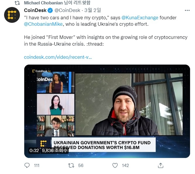테크크런치는 쿠나 창업자인 마이클 초바니안에게 암호화폐 사용처에 대해 몇 가지 질문을 던졌다. 초바니안은 암호화폐 기부에서 쿠나의 역할과 우크라이나 정부의 동기에 대해 자세히 설명했다.