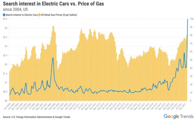 전기차 대여 전문업체인 오토노미의 제시 토프랙 선임 애널리스트는 CNN과 인터뷰에서 “구글에서 전기차 검색 빈도가 급증한 것은 휘발유 가격이 급등한 결과이기도 하지만 다양한 전기차 모델이 시장에 쏟아지면서 소비자들의 선택의 폭이 크게 넓어진 것과도 무관치 않다”고 분석했다.