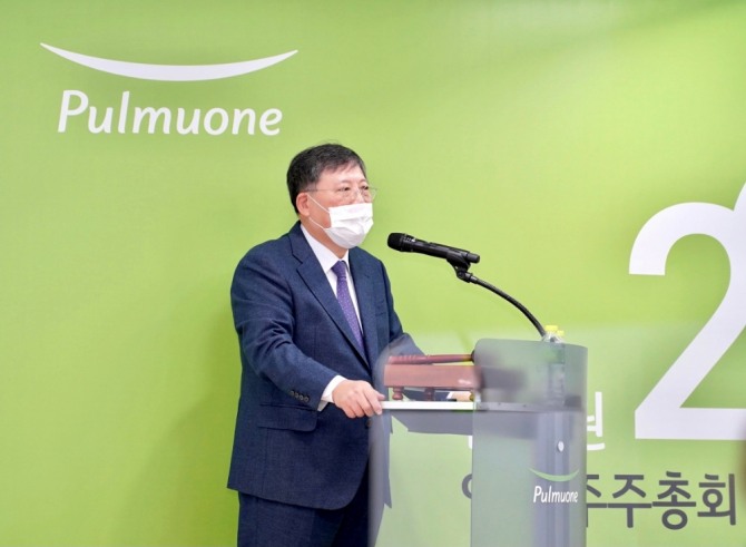 풀무원이 30일 서울 강남구 수서동 풀무원 본사에서 ’2022 풀무원 열린 주주총회’를 현장 진행과 온라인으로 병행 개최한다. 이효율 풀무원 대표가 지난해 3월 열린 주주총회에서 인사말을 전하고 있다. 사진=풀무원이미지 확대보기