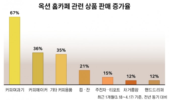 옥션은 지난 한 달(3월 18일~4월 17일)간 커피여과기 판매량이 전년 동기에 비해 67% 급증했고, 커피메이커(36%)와 티포트(15%), 핸드드리퍼(12%) 등도 전년 동기 대비 두자릿수 판매 증가율을 기록했다고 19일 밝혔다.