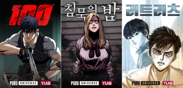 해당 작품들은 크래프톤과 웹툰 제작사 와이랩이 협업해 지난해 11월 네이버웹툰서 공개한 웹툰들이다. '100'은 생존 확률 1%의 배틀로얄에 참여한 국정원 요원의 이야기를, '침묵의 밤'은 아버지의 갑작스러운 죽음에 관한 비밀을 파헤치는 여주인공의 이야기를, '리트리츠'는 암울한 미래 속 계획 도시에서 벌어지는 사건을 다룬다.