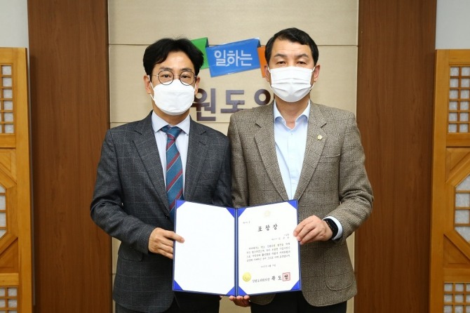 공로 인정 받아 표창장…곽도영 강원도의회 의장과 상생 방안 논의도