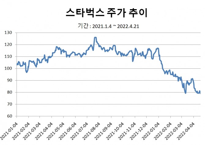 하지만 하워드 슐츠의 3번째 재임 초반 주가는 부진한 모습을 보이고 있다. 이달 4일 슐츠가 복귀한 이후 스타벅스 주가는 S&P 500 지수를 밑돌았다.