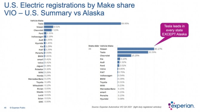 이미지 확대보기테슬라 전기차가 미국 중고시장에서 강세를 띌 수 밖에 없는 또다른 배경으로 꼽히는 것은 테슬라가 미국 시장에서 여전히 행사하고 있는 압도적인 지배력 때문이다.