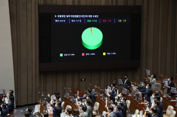 '검수완박' 검찰청법 개정안 국회 본회의 통과