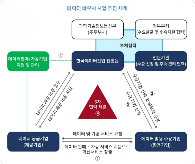 이미지 확대보기데이터바우처 지원사업은 수요기업에게 필요한 데이터 또는 가공서비스를 공급기업으로부터 ‘바우처’형식으로 제공받는 데이터 활용 지원 서비스다.