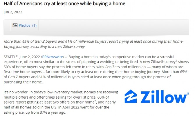 질로는 특히 MZ세대에 속한 소비자들 사이에서 이런 경향이 도드라져 MZ세대의 63%(밀레니얼세대의 61% 및 Z세대의 65%)가 집을 사거나 알아보는 과정에서 겪은 어려움 때문에 적어도 한번 울음을 터뜨린 경험이 있다고 밝혔다.