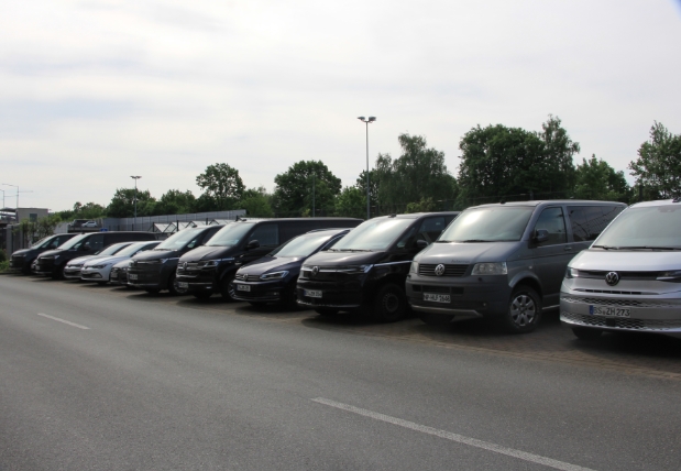 하노버 공장 초입에 주차되어 있는 폭스바겐 상용차 모습. 사진=김정희 기자