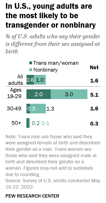 30세 아래의 성인에서 확인된 성소수자 비율은 30세에서 49세 사이의 미국인 가운데 성소수자 비율 1.6%, 50세 이상에서 나타난 비율 0.3와 큰 대조를 이뤘다고 퓨리서치는 밝혔다.