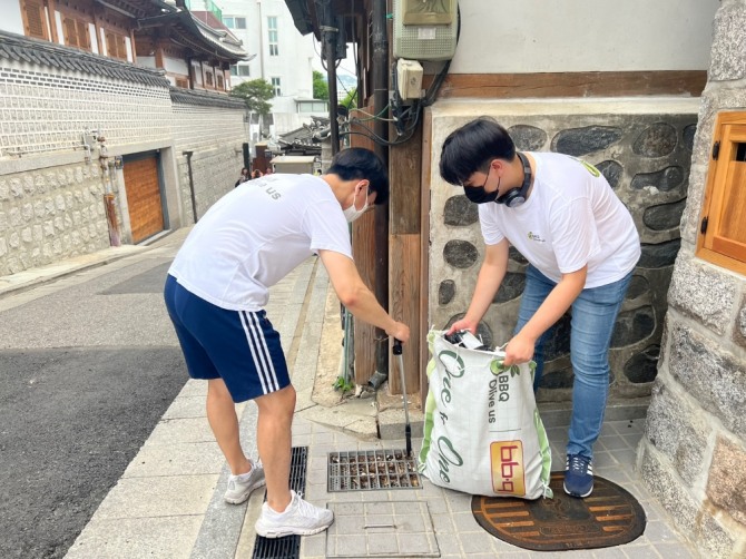 이미지 확대보기제너시스BBQ 그룹의 대학생 봉사단 BBQ 올리버스가 북촌 한옥마을 일대에서 환경 정화 활동을 진행했다.
