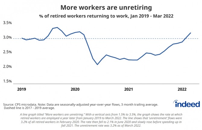 미국 로스앤젤레스에서 취업 컨설턴트로 활동하는 존 타노프는 머니와이즈와 인터뷰에서 “언론에 관심을 기울이지 않았을 뿐이지 그동안 수면 아래에서 퇴직자들이 직장으로 복귀하는 흐름이 그동안 꾸준히 형성된 결과로 보인다”고 분석했다.