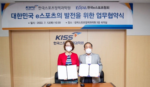 한국e스포츠협회(KeSPA)와 한국스포츠정책과학원(KISS)가 e스포츠 국가대표 경기력 향상·산업 발전을 목표로 업무 협약 양해각서(MOU)를 12일 체결했다.