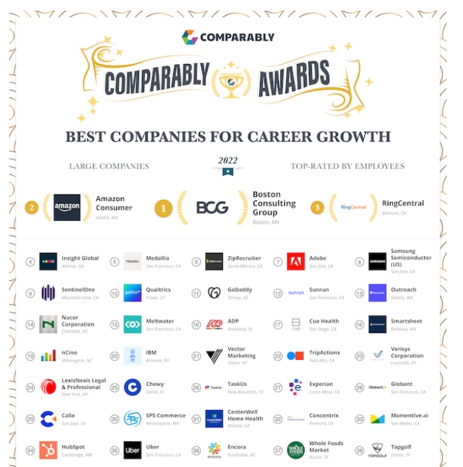 보스턴컨설팅이 가장 좋은 평가를 받은 배경과 관련, 제이슨 네이자 캄퍼러블리 CEO는 CNBC와 인터뷰에서 “보스턴컨설팅에서 일하는 직장인의 무려 95%가 회상 생활에서 성취감을 느끼고 있고 77%가 멘토의 지도를 받고 있다고 밝혔다”고 설명했다.