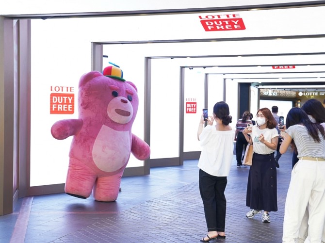 이미지 확대보기롯데면세점은 최근 큰 인기를 얻고 있는 분홍색 곰돌이 캐릭터인 '벨리곰'의 팝업스토어를 오늘 21일부터 다음달 31일까지 운영한다. 벨리곰 팝업스토어는 롯데면세점 명동본점 10층과 12층에서 만나볼 수 있으며, 고객들이 인증샷을 찍으며 면세 쇼핑을 즐길 수 있도록 벨리곰 포토존과 영상 콘텐츠 등을 선보인다.