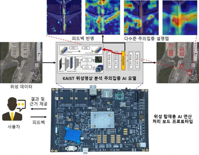 이와 함께 판독관 피드백을 반영하는 전문판독관 참여형 학습 모델을 바탕으로 한 약한 지도학습 기법도 적용한다. 또 윤 교수 연구팀은 위성 탑재가 가능한 AI 처리용 하드웨어 보드를 개발해 대용량의 위성영상 정보를 고속으로 처리하는 기술을 확보했다. 설명가능한 AI 모델 처리용 칩인 EPU(Explainable Neuro-Processing Unit)를 구현하는 연구도 진행 중이다.