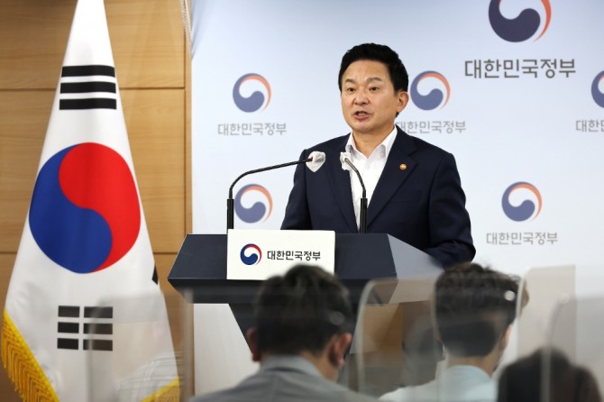 원희룡 국토교통부 장관이 28일 정부서울청사 브리핑실에서 이스타항공 변경면허 발급과정 조사 결과를 발표하고 있다. 사진=연합이미지 확대보기