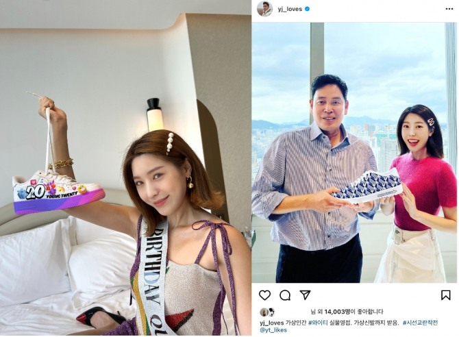 전날(8일)에는 정용진 신세계그룹 부회장이 와이티와 함께 찍은 사진을 인스타그램에 올렸다. 정 부회장은 이 게시물에 "가상인간 와이티 신물 영접", "가상신발까지 받음"이라는 내용을 담으며 와이티를 적극 홍보했다.