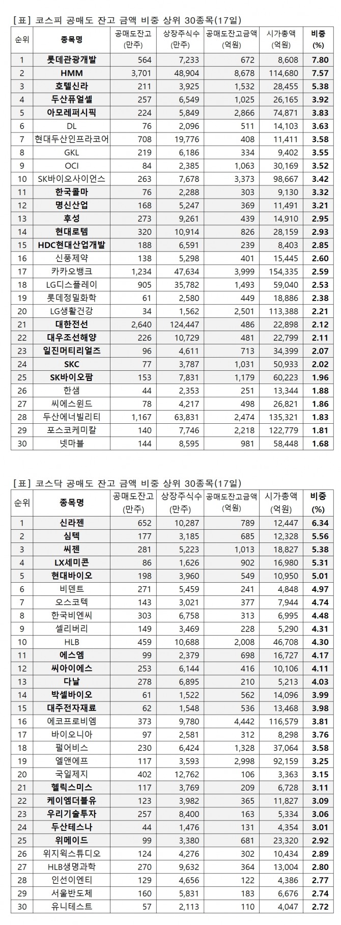 이미지 확대보기유가증권시장 시가총액 대비 공매도 잔고금액 비중(17일)