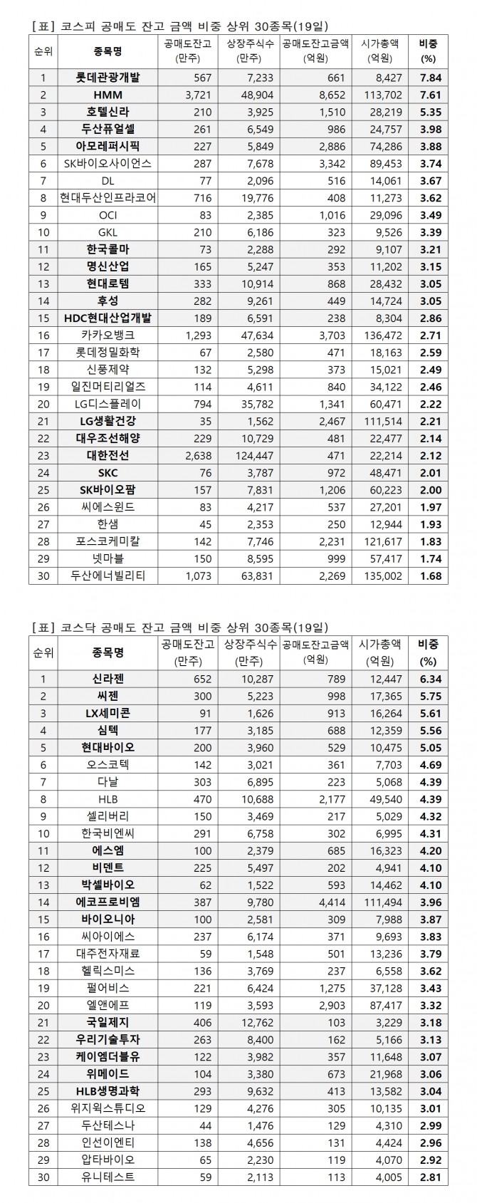 이미지 확대보기유가증권시장 시가총액 대비 공매도 잔고금액 비중(19일)