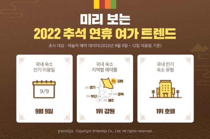야놀자, 2022 추석 연휴 여가 트렌드 공개