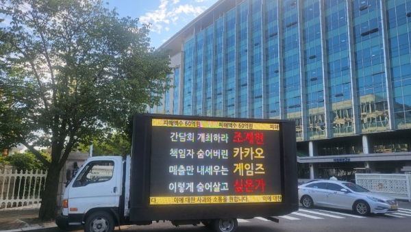 가을의 시작을 알리는 9월 첫 날, 서울 여의도 국회 의원회관 앞에 카카오게임즈 경영진의 '우마무스메' 운영 방식을 성토하며 이용자들과의 소통을 위해 간담회를 개최할 것을 촉구하는 트럭이 나타났다.