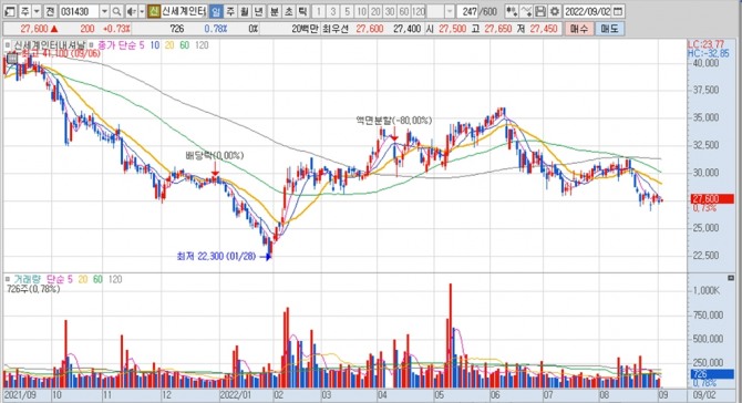 신세계인터내셔날은 지난 4월 11일 액면가 5000원 주식을 1000원으로 액면분할했습니다.