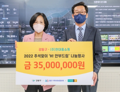 이미지 확대보기현대홈쇼핑은 한가위를 맞아 강동구 거주 소외계층에 생활용품을 지원한다. 이번 지역 이웃돕기 사업은 현대홈쇼핑이 운영하는 사회공헌사업 '하이(Hi) 안부드림'의 일환이다.