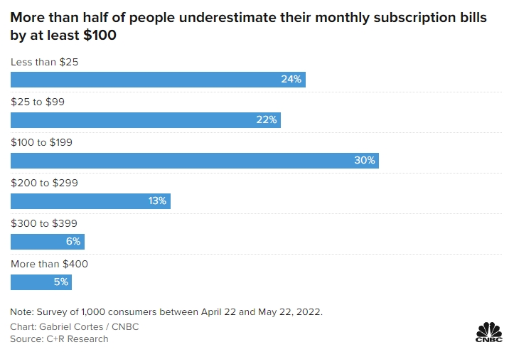이번 조사에 참여한 소비자들이 구독 서비스 때문에 매달 지출하는 돈을 점검한 결과 당초 생각한 것보다 평균 133달러(약 18만4000원)를 더 쓰는 것으로 확인됐기 때문이다.