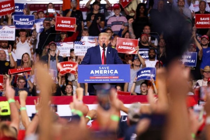 도널드 트럼프 전 대통령이 지난 3일(현지시간) 미국 펜실베이니아주 윌크스배리에서 열린 11월 중간선거 관련 지원유세에서 연설하고 있다. 사진=로이터