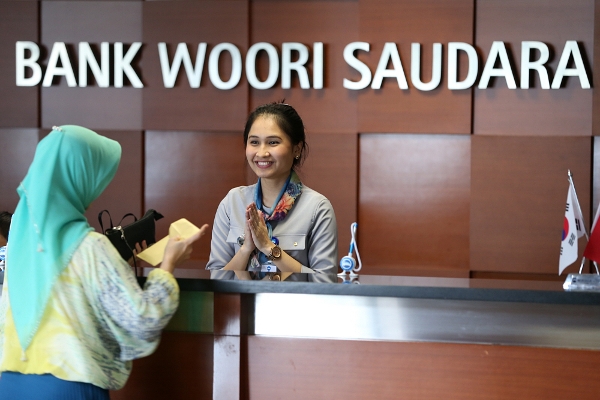 우리은행의 인도네시아법인인 우리소다라은행 직원이 고객을 응대하고 있는 모습. 우리은행은 2013년 소다라은행 지분을 인수한 뒤 이듬해 인도네시아법인과 합병해 우리소다라은행을 출범시켰다. 사진=우리은행