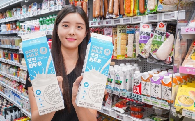 이미지 확대보기27일 유통업계에 따르면 세븐일레븐은 지난 26일 초저가 자체 브랜드 '굿민'을 통해 흰우유를 출시했다. '굿민흰우유'는 시중 제품 대비 10% 이상 저렴한 2300원이다. 내달 중순이면 우윳값 인상이 확실시 된 이후의 소식이다. 지난 20일 낙농가와 유업계는 원유 가격 결정을 위한 협상을 시작해 다음 달 15일까지 결론을 내기로 했다.