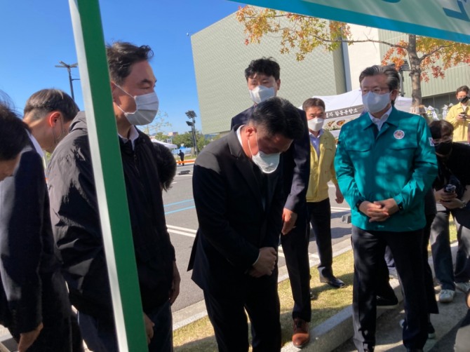 정 회장은 이날 오후 2시 30분께 합동분향소를 찾아 "사고로 희생되신 고인분들과 유가족분들께 깊은 애도와 사죄 말씀을 드린다"라며 "사고 수습과 유가족 지원에 최선을 다하겠다"고 전했다.