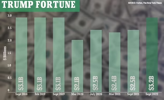 28일(이하 현지시간) 데일리메일 등 외신에 따르면 미국의 경영전문지 포브스가 이날 발표한 자료에 따르면 트럼프 전 대통령의 현재 순자산은 32억달러(약 4조6000억원) 수준으로 집계됐다.