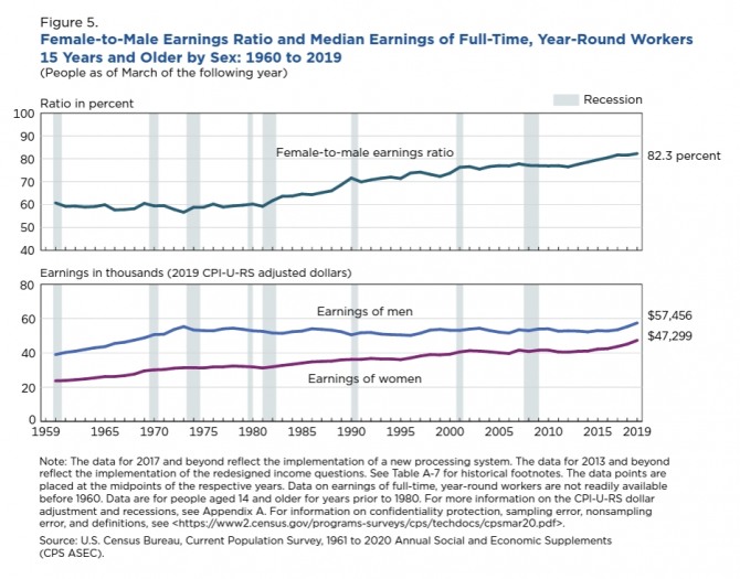 실제로 미 인구조사국 통계에 따르면 지난 2019년 기준으로 미국의 여성 직장인은 남성 직장인보다 평균 17% 적은 임금을 받고 있고 흑인 여성은 백인 남성에 비해 무려 42%나 적은 돈을 받고 일하고 있는 실정이다.