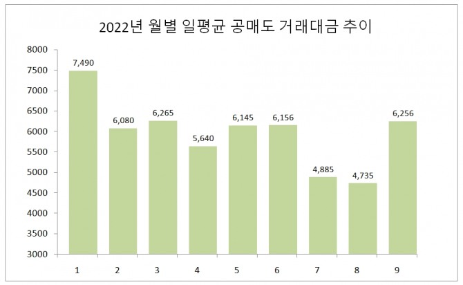 9월 일평균 공매도 거래대금 6천억원대 '껑충'
