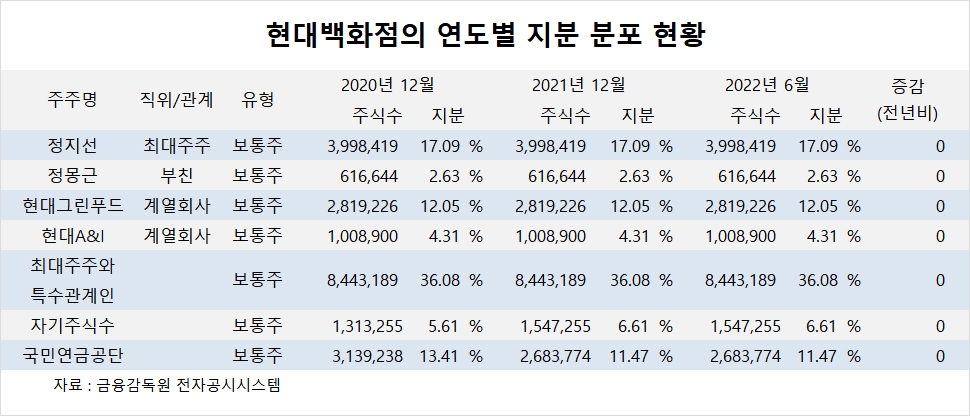 이미지 확대보기현대백화점의 최대주주는 정지선 회장으로 지분 17.09%를 보유하고 있습니다.