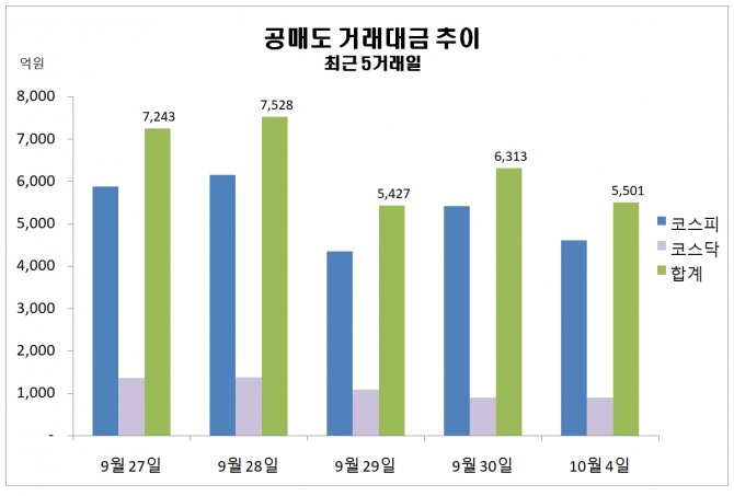 이미지 확대보기이날 공매도 거래대금은 전 거래일 보다 812억원 감소한 금액이다.