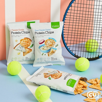 프로틴칩 2종은 기름에 튀기는 대신 곡물을 열과 압력으로 퍼핑해 만들었고 당 함유량이 1일 영양성분 기준치 대비 약 1% 수준으로 낮다. 또 국내산 닭가슴살이 함유돼 있어 한 봉지(50g)당 단백질이 11g 들어있다.