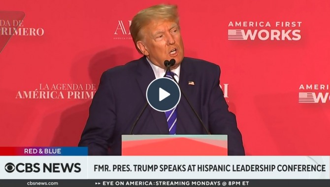 6일(현지시간) 야후뉴스에 따르면 트럼프는 전날 미국 플로리다주 마이애미에서 보수성향 싱크탱크 미국우선정책연구소(AFPI) 주최로 열린 ‘히스패닉 리더십 컨퍼런스’에 참석한 자리에서 “지금 당장 두 지도자가 무덤에서 깨어나와 대통령-부통령 후보로 대통령선거에서 나와 싸우게 된다면 내가 40% 격차로 그들을 꺾을 것”이라고 주장했다.